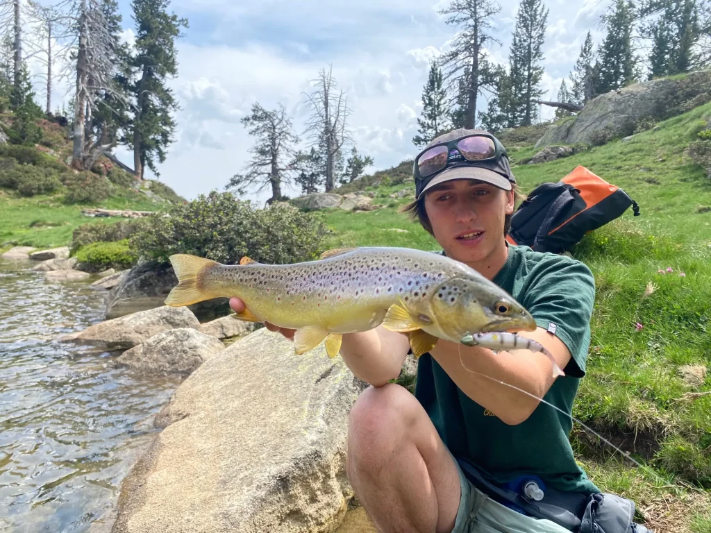 La pêche commençant à 6 heures, nous décidions de se réveiller à 5h20, pour prendre le temps de manger un bout et de replier toutes les affaires. L’heure de pêche sonne nous nous dirigions vers un petit lac pour débuter notre pêche, bon choix puisque dès le premier lancer je rentre une truite à la Tanza 10 gr, pas bien grosse mais maillé. Après avoir fait le tour des petits lacs de la veille qui ont donné, le constat est sans appel, les truites sont sur off et avec le soleil plombant ça va être compliqué d’en faire réagir. On prend la décision de monter à port bielh pour pêcher les ombles chevaliers et truite. Même constat les ombles sont peu réceptifs, nous parvenons tout de même à en rentrer quelques-uns au Swift Minow 60 mm Perch et au Lanka Jig 7 et 10 gr. Puis en grattant à la Tanza entre deux eaux, une jolie truite viendra nous redonner espoir. Dans l’après-midi nous tournions sur les différents lacs en dessous de Port bielh, et nous somme dans l’incapacité de déclencher une truite, la pression de pêche et la chaleur ne sont pas là pour aider… Petit retour sur Port bielh, pour valider le quota ombles, vers 18 heures ils sont nettement plus mordeur qu’en début d’après-midi, et là c’est rapidement le festival avec les mêmes techniques.