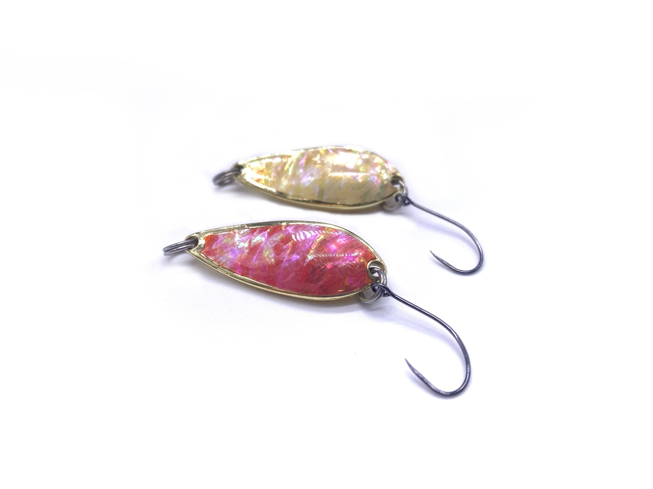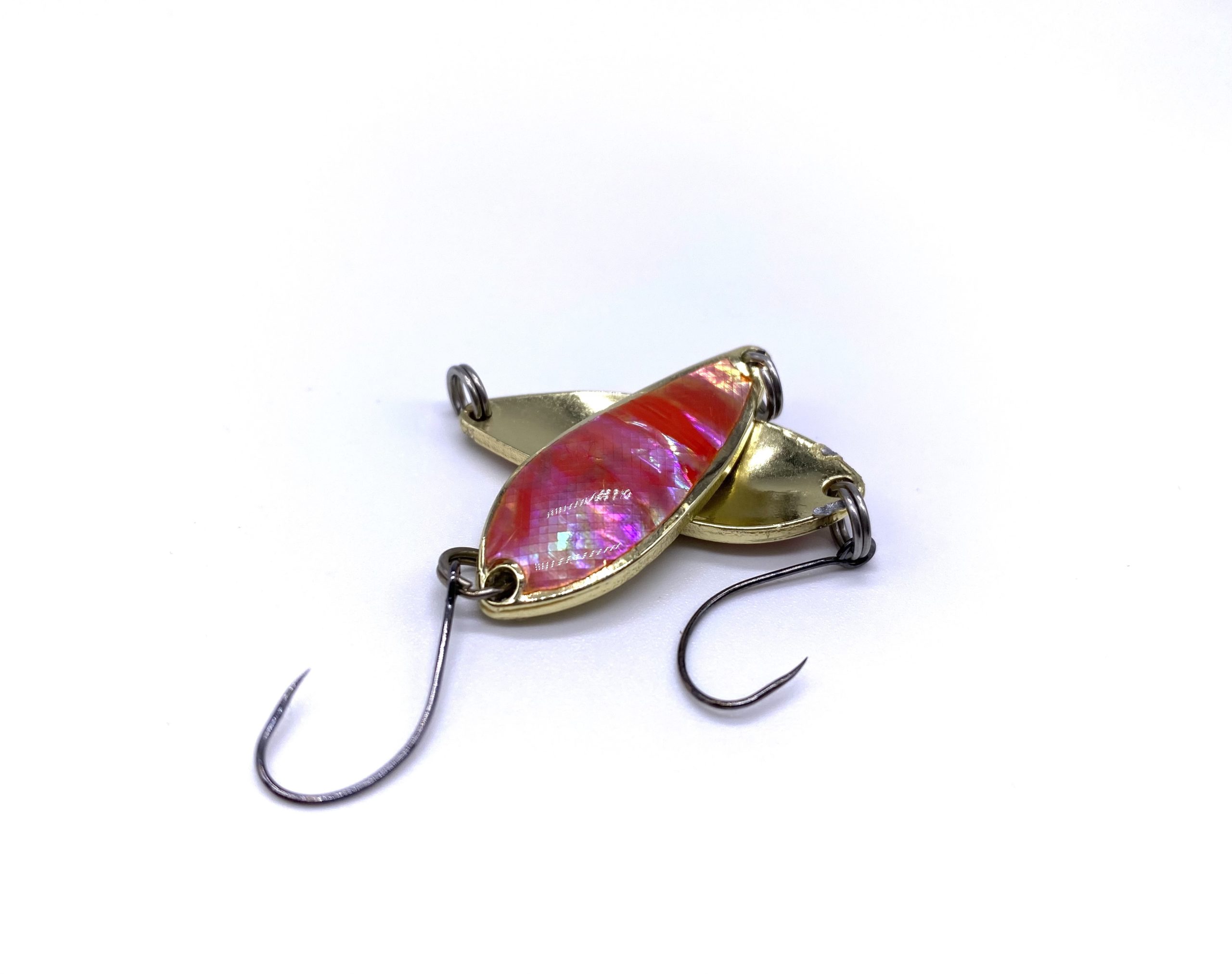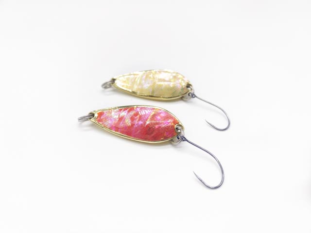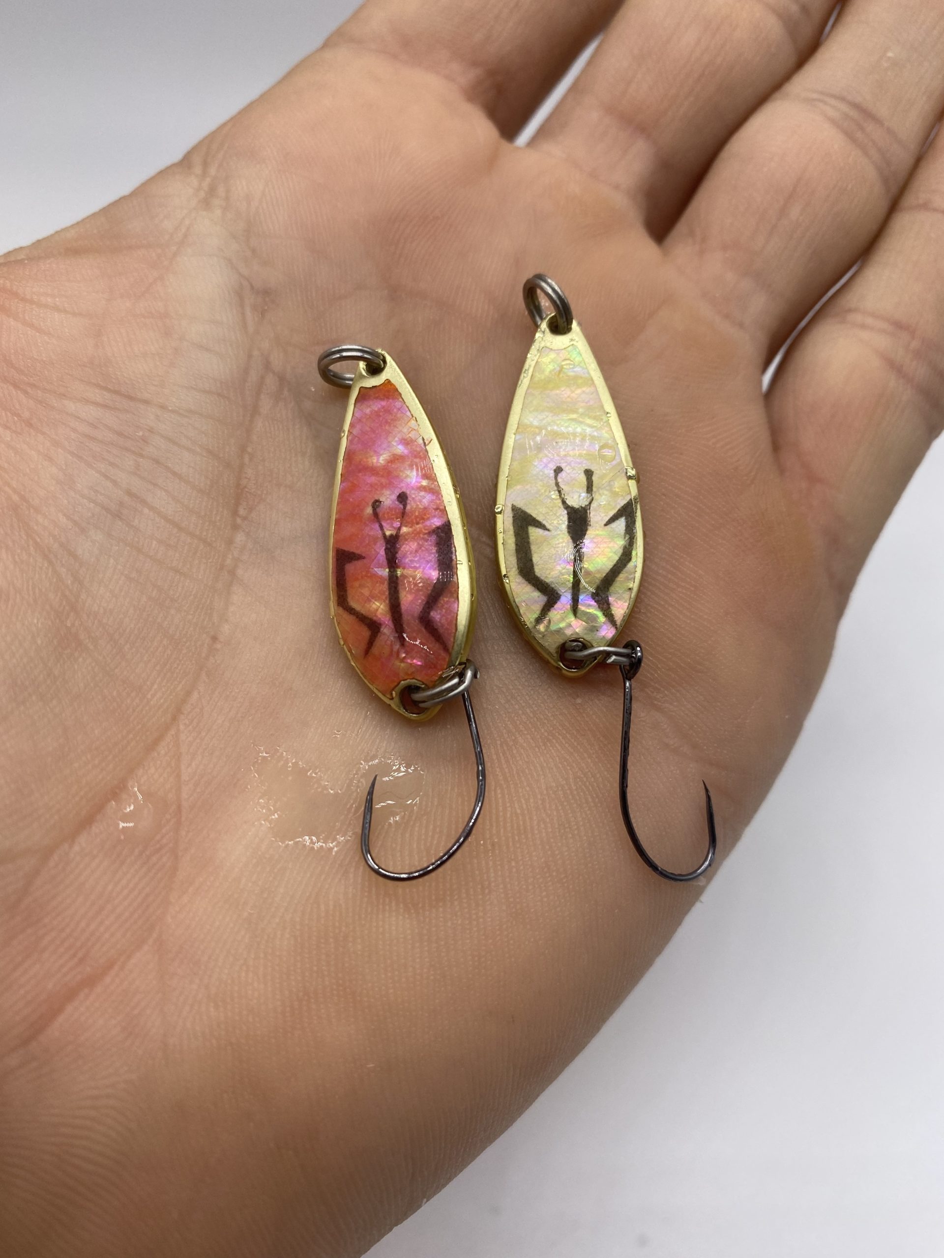 Pour couronner le tout, je me suis fais plaisir en apportant un peu d’innovation non pas au niveau technique et bénéfique pour faire la différence en pêche, mais plus pour le délire et proposer des modèles tous différents et uniques. En effet, quand vous placez l’ondulante en milieu froid dans l’eau (inférieur à 12 °C), le logo Morpho va venir se dessiner sous la feuille de nacre de cette cuillère ondulante.